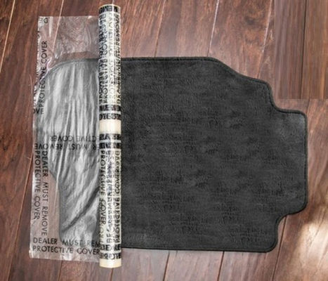 उद्योग मानक आयताकार पैटर्न के साथ मुद्रित यह कार कालीन रक्षक, "डीलर को सुरक्षात्मक कवर निकालना होगा" पाठ।